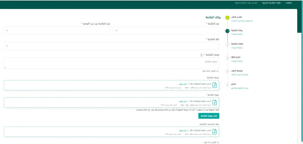 الخطوة الثالثة: طريقة رفع طلب تسجيل علامة تجارية