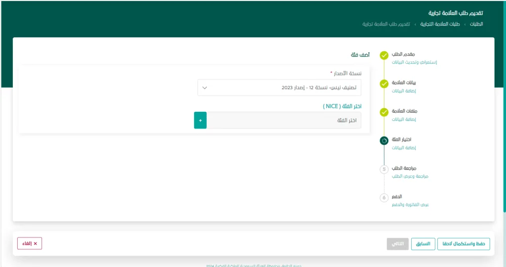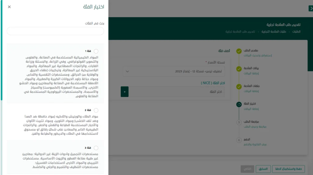 الخطوة الرابعة: طريقة اختيار فئة أو تصنيف العلامة التجارية