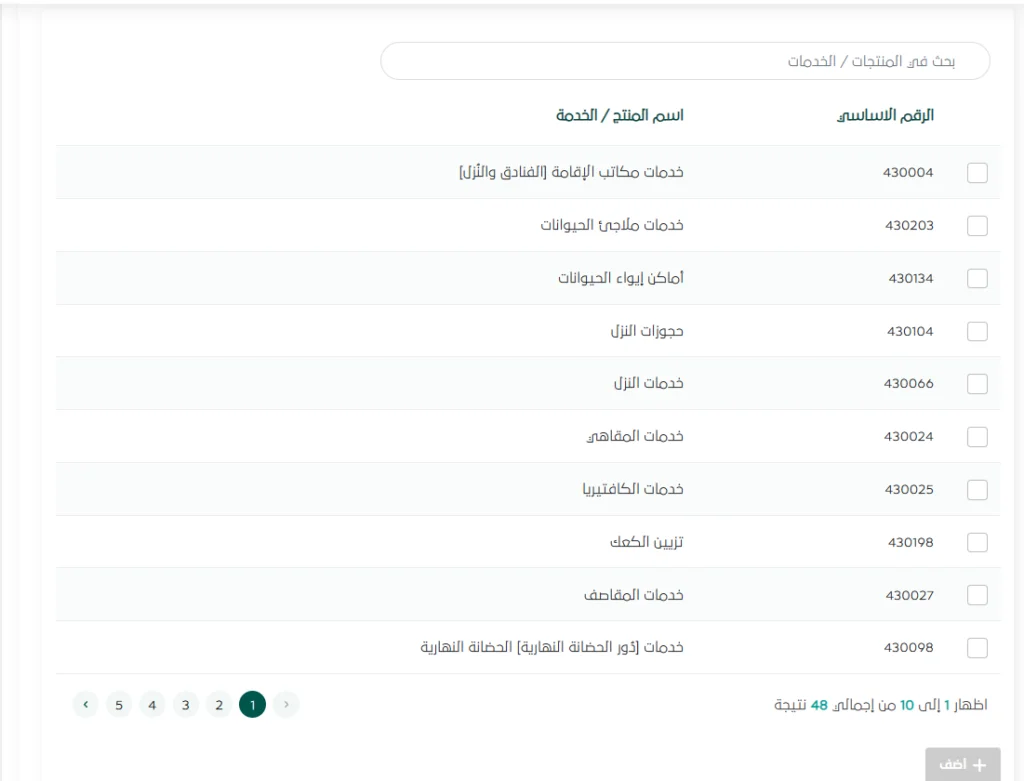 بعد اختيار فئتك، ستظهر قائمة بجميع المنتجات والخدمات في هذه الفئة، قم باختيار الخدمات والمنتجات التي تقدمها شركتك.