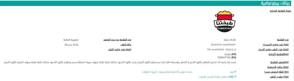 بعد قراءة معلومات جميع العلامات التجارية المشابهة، نجد انه لا يوجد اي علامة تجارية مُسجلة في فئة المطاعم 43، لذا فإن العلامة التجارية “علامة” متاحة للتسجيل كعلامة تجارية في فئة المطاعم.
