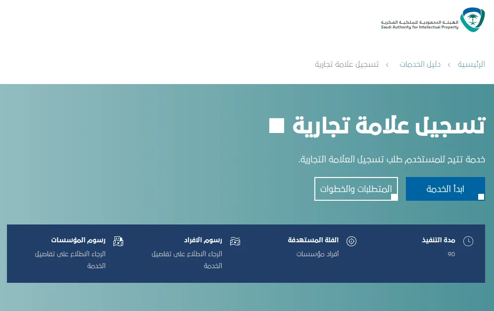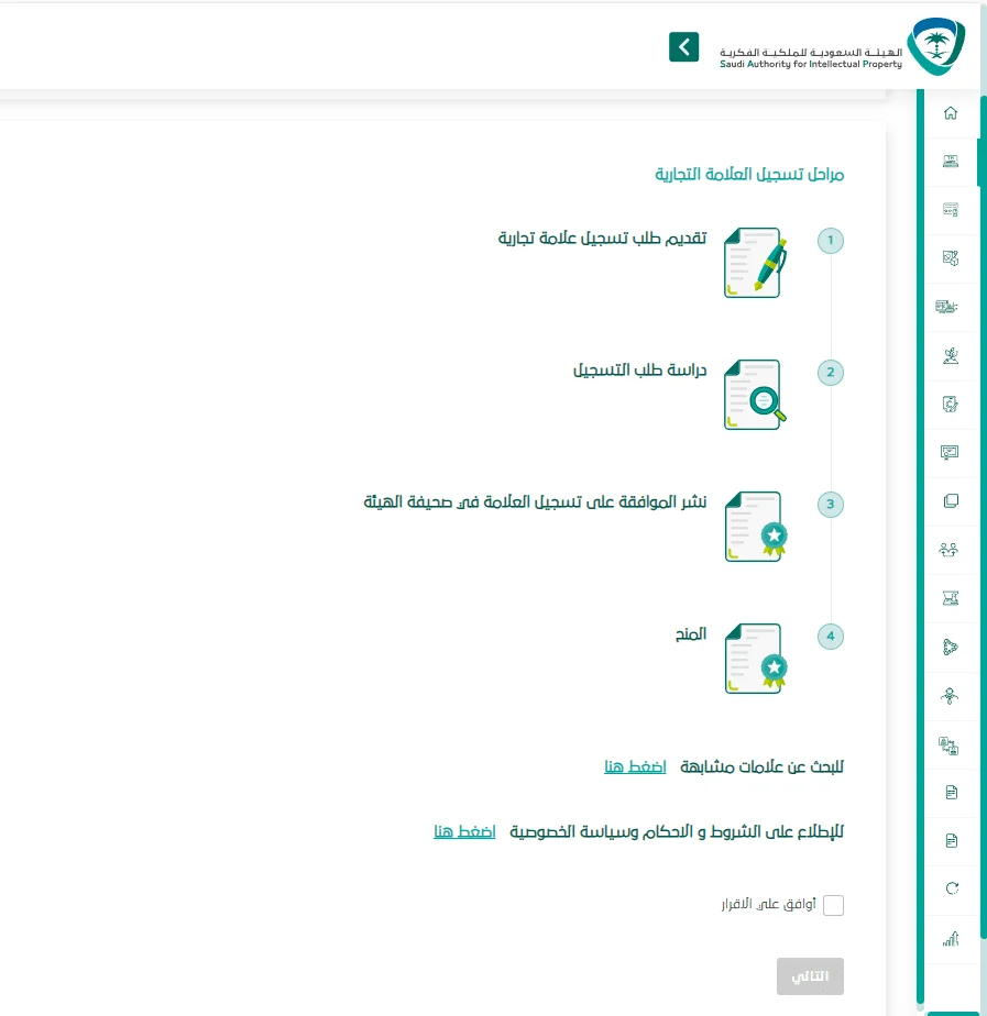 الآن بعد ان تأكدنا من توفر علامتنا التجارية للتسجيل، الخطوة التالية هي الدخول الى موقع الهيئة السعودية للملكية الفكرية وبدء اجراءات التسجيل.
