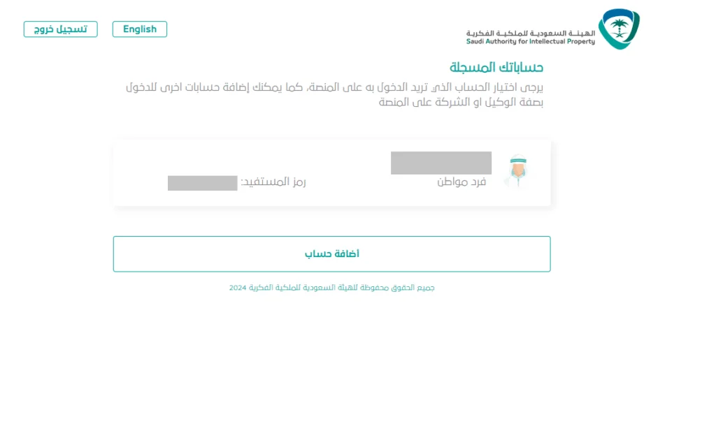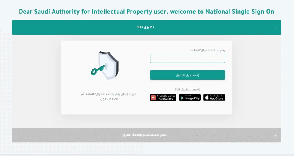 لتسجيل دخولك الى حسابك في موقع الهيئة السعودية للملكية الفكرية اضغط هنا