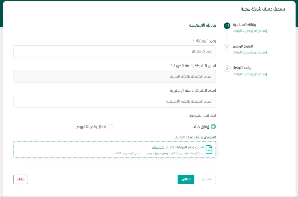 بعد إكمال معلومات النموذج، اضغط على التالي، سيظهر لك الآن العنوان الوطني الخاص بشركتك.