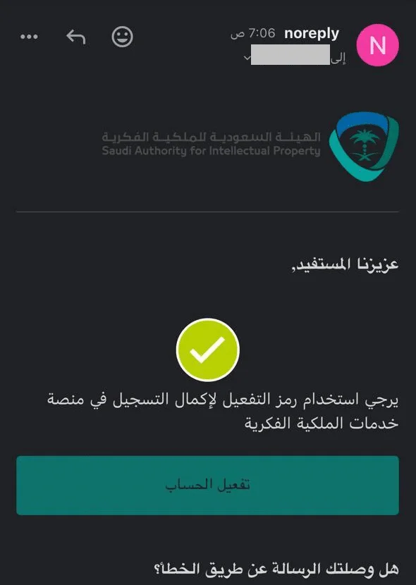 سيتم إرسال ايميل على بريدك الالكتروني الذي ادخلته في الخطوة السابقة، قم بفتحه واضغط على زر تفعيل الحساب كما في الصورة