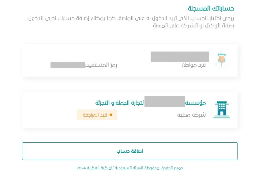 بعد تفعيل حساب الشركة، سيتم إضافة حساب الشركة الى حساباتك المسجلة، وسيكون حسابك شركتك قيد المراجعة لمدة 5 أو 10 دقائق.