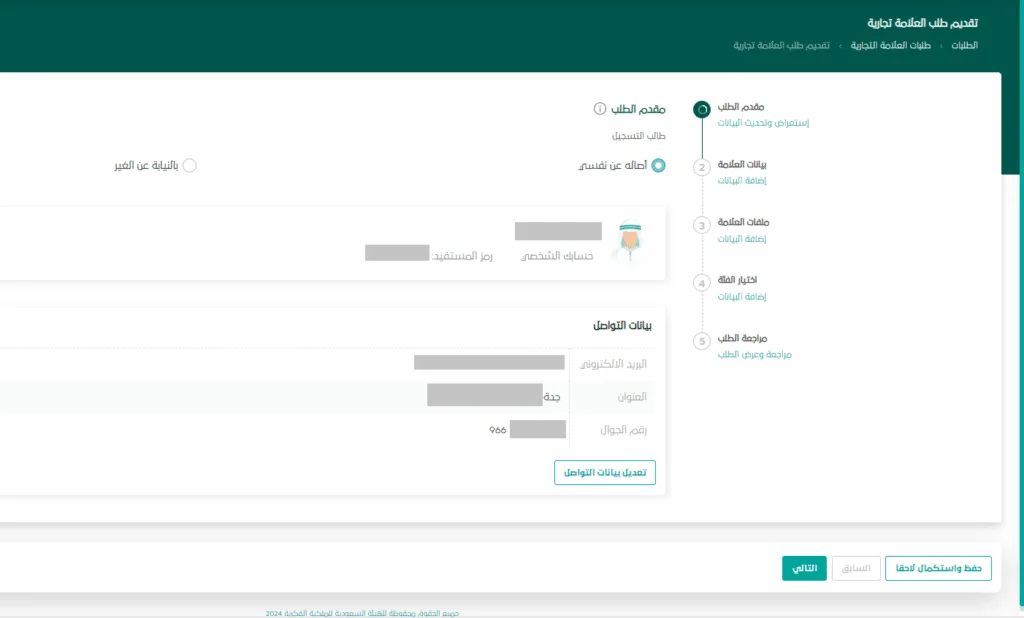 تحتوي الصفحة السابقة على معلومات مُقدم الطلب، اذا كانت صحيحة اضغط على التالي
